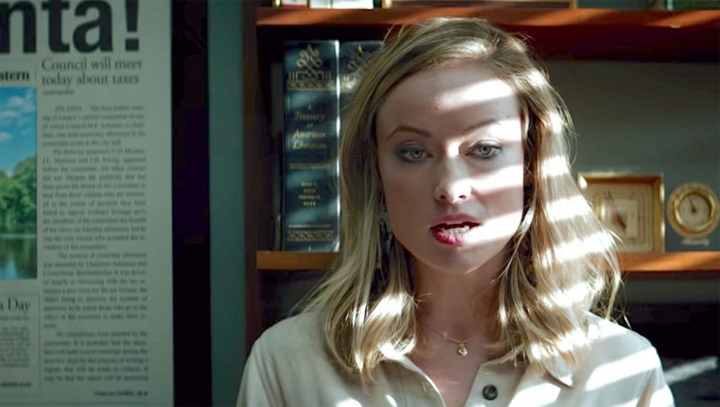 That said, Bates and Hauser are joined by Sam Rockwell (Three Billboards…) as a radical government lawyer, Jon Hamm (TV’s Mad Men) as an FBI agent and, in a career-best performance, Olivia Wilde (Cowboys & Aliens) as a skanky newspaper reporter. All five major cast members and others, including and especially Nina Arianda as an immigrant from a country where “when the government claims someone’s guilty, that’s how you know they’re innocent”.