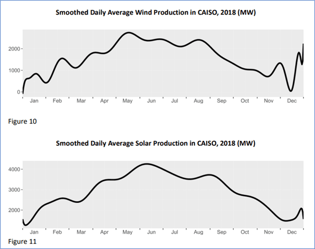 CAISO Wind and Solar graphs (Fig 10 and 11) and the California Battery Storage Graph of Renewable Supluses and Deficits (Fig 14) are all from the same paper by Clean Air Task Force presentation to Congress which is cited in footnote 1: 20190724-Cohen-Pathways-to-Decarbonize-1