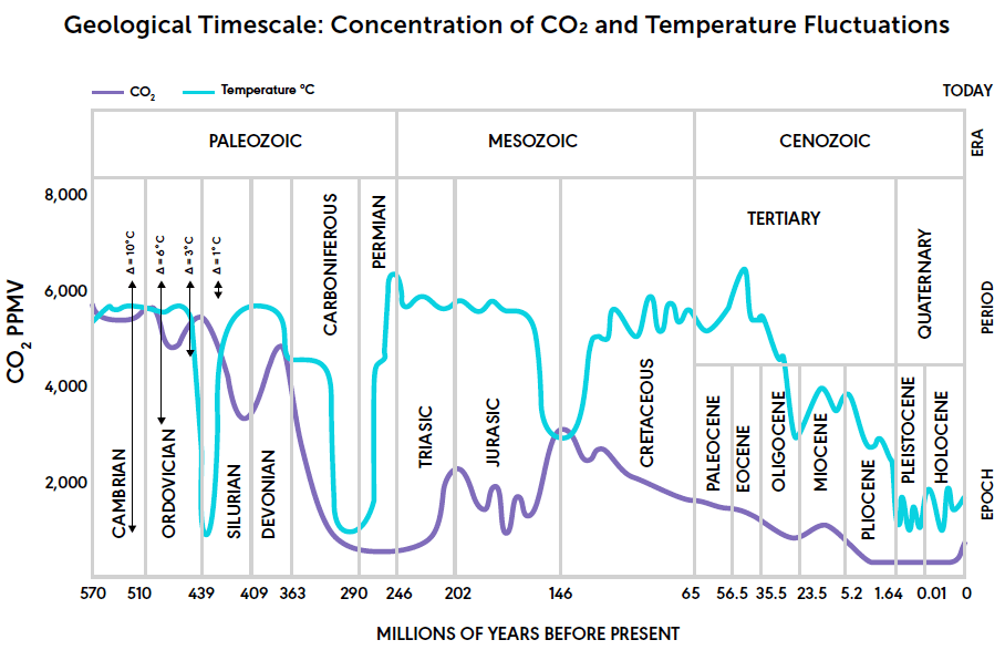 1. “The best estimate of CO2 concentration in the global atmosphere 540 million years ago is 7,000 ppm, with a wide margin of error.”
