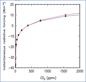 Figure 4. Radiative Forcing vs. CO2 concentration by Zhong and Haig.
