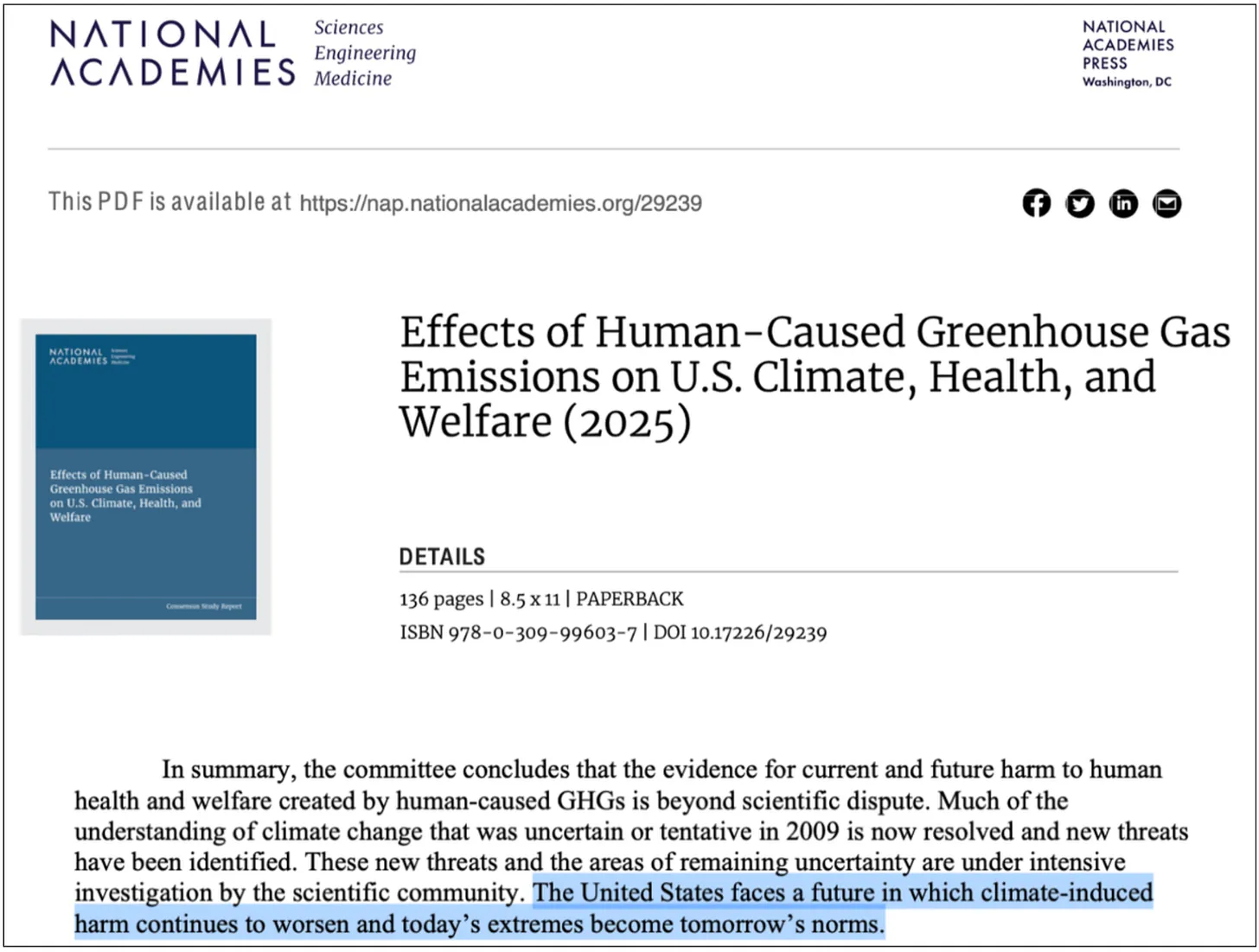 1 National Academies of Sciences, Engineering, and Medicine – Effects of Human-Caused Greenhouse Gas Emissions on U.S. Climate, Health, and Welfare